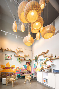 Popular urban dining location has great style to fits it's great food. Efficient layout design utilizes the space for a smooth experience for customers.